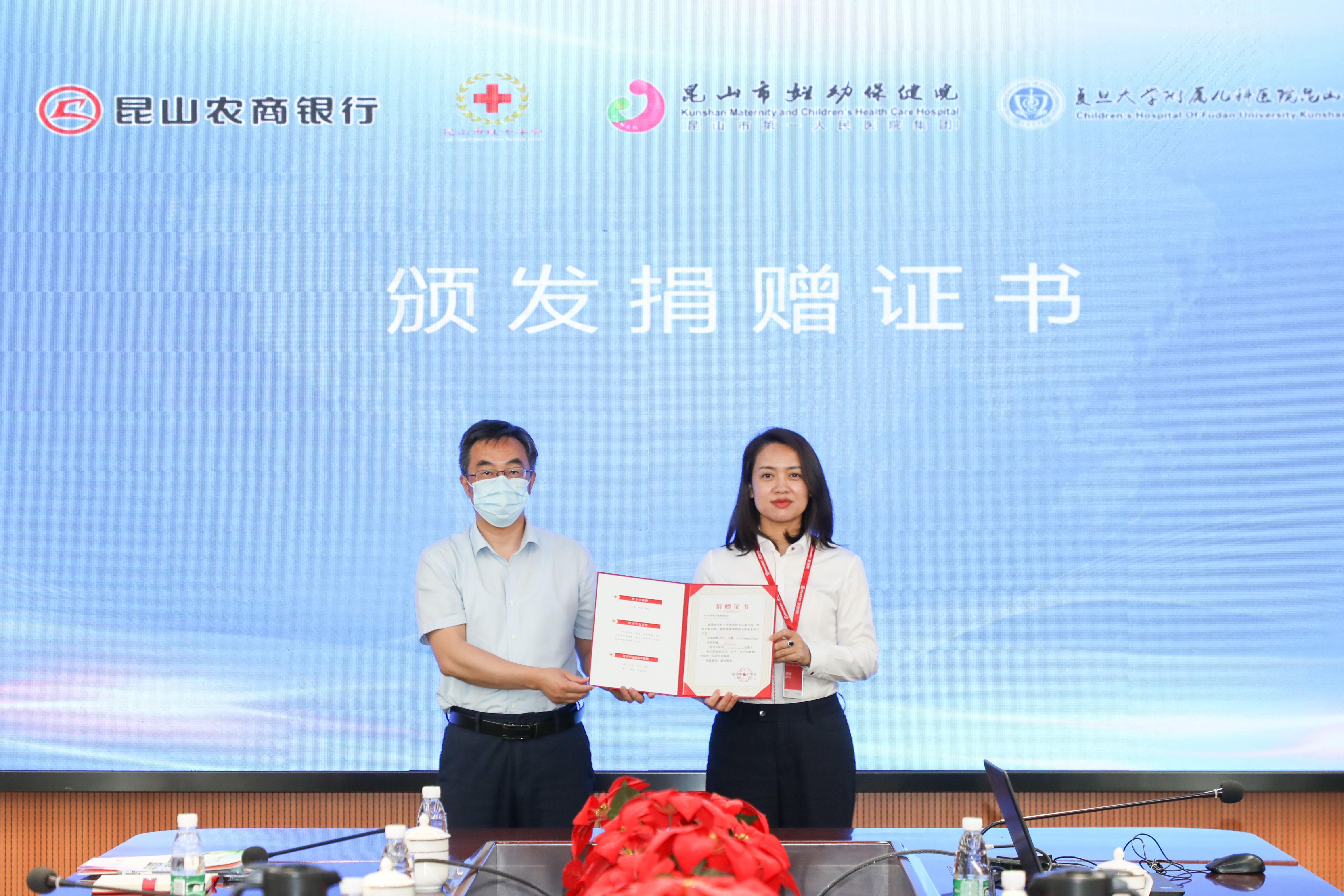 昆山市紅十字會副會長吳鶯、秘書長易亮衡,昆山市第一人民醫(yī)院黨委副書記楊茹,昆山市婦幼保健院副院長劉琴、韓霞、華亞芳,昆山農商銀行董事會秘書、黨委辦公室主任、慈善基金會副理事長章愛軍,昆山農商銀行工會主席、行政辦公室主任、慈善基金會秘書長呂玲及各單位相關同志參加活動。